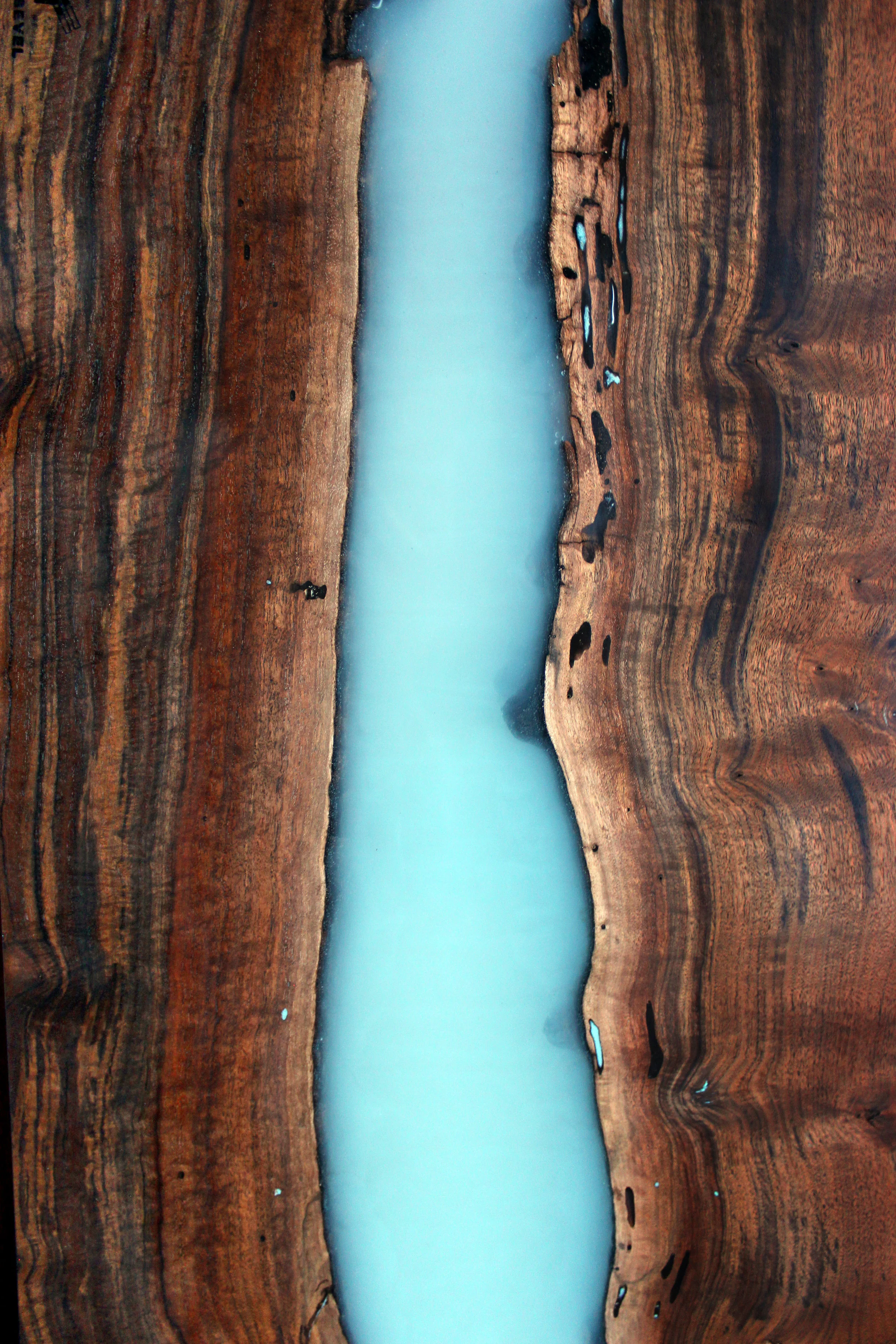 This slab is California grown bastogne walnut, and the cracks are filled with a crushed turquoise inlay.